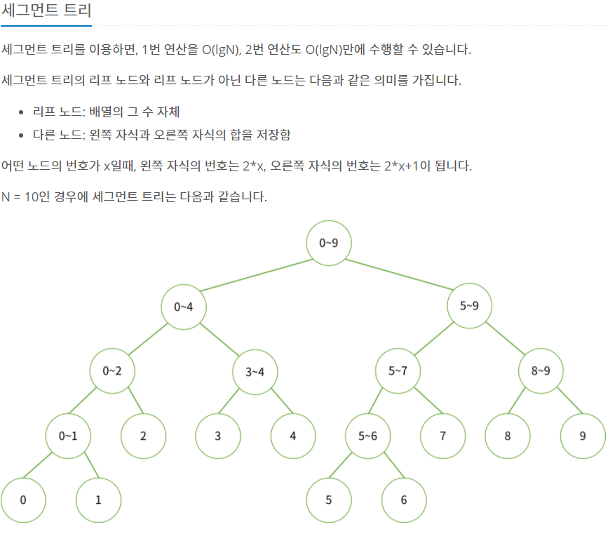 먼저, 세그먼트 트리는 배열의 크기가 커질 경우, 연산 식에 유용하다.